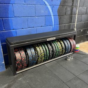 Introducing the Bumper Plate Storage Bench – the epitome of quality and functionality for your weightlifting space. Proudly made in Britain, this bench is crafted to extremely high quality, featuring a robust steel structure that comes with a lifetime guarantee, ensuring it stands the test of time. Made with heavy duty 50x50x3mm steel box section.